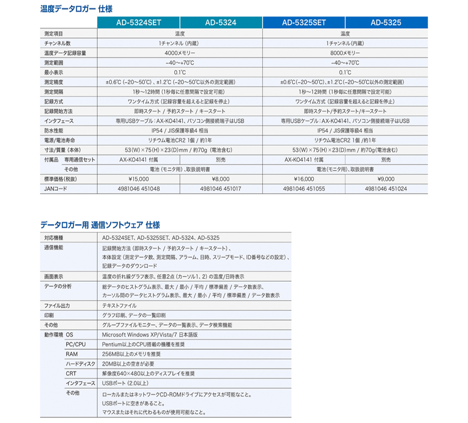 AND(A&D)溫度數據記錄器AD-5325