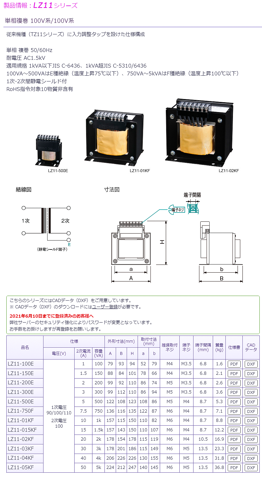 豐澄單相100V/100V變壓器LZ11-300E